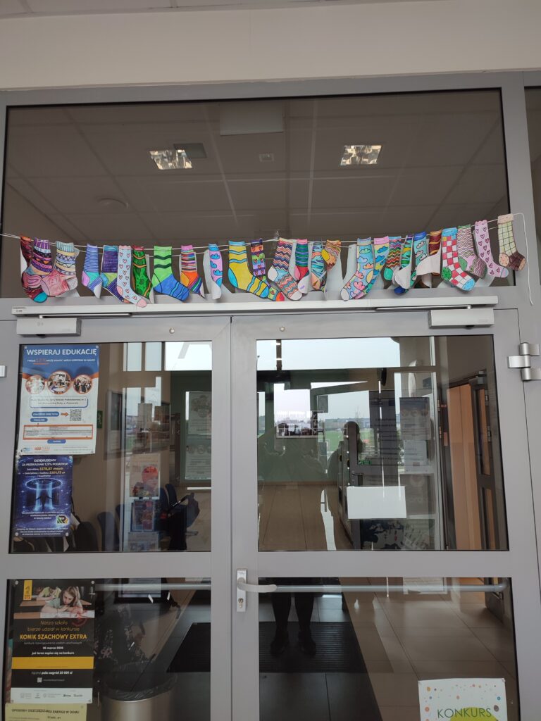 Uczniowie klas 1-3 wzięli udział w IV Ogólnopolskim Happeningu “Przywitaj wiosnę w kolorowych skarpetkach” z okazji Światowego Dnia Osób z zespołem Downa. Kolorowe skarpetki zawisły nad drzwiami wejściowymi do naszej szkoły oraz ozdobiły korytarz.
