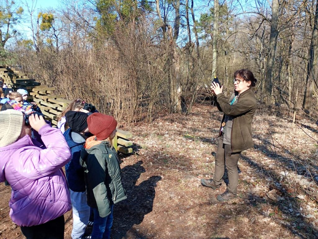 Uczniowie klas 1-3 powitali wiosnę lekcją outdoorową. Każda klasa podzieliła się na drużyny: otwartych uszu, zjawisk atmosferycznych, kolorów wiosny oraz matematycznych pomiarów. Uczniowie mieli za zadanie m.in. policzyć chmury, zmierzyć wysokość kwiatów, poszukać owadów, sprawdzić drzewa i rośliny czy są już pąki, zmierzyć temperaturę powietrza, dotknąć gleby i ją określić, usłyszeć dźwięki takie jak szum