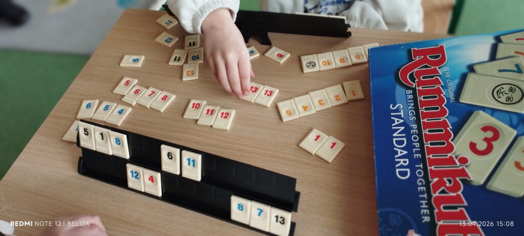 Podczas ostatnich zajęć kółka kreatywnego uczniowie po raz pierwszy poznawali zasady gry Rummikub. Mimo że dla większości dzieci była to zupełnie nowa forma aktywności, z dużym entuzjazmem podejmowały kolejne wyzwania, ucząc się układania kombinacji i planowania swoich ruchów. Zajęcia były świetną okazją do rozwijania logicznego myślenia, koncentracji oraz umiejętności współpracy i zdrowej rywalizacji. To także