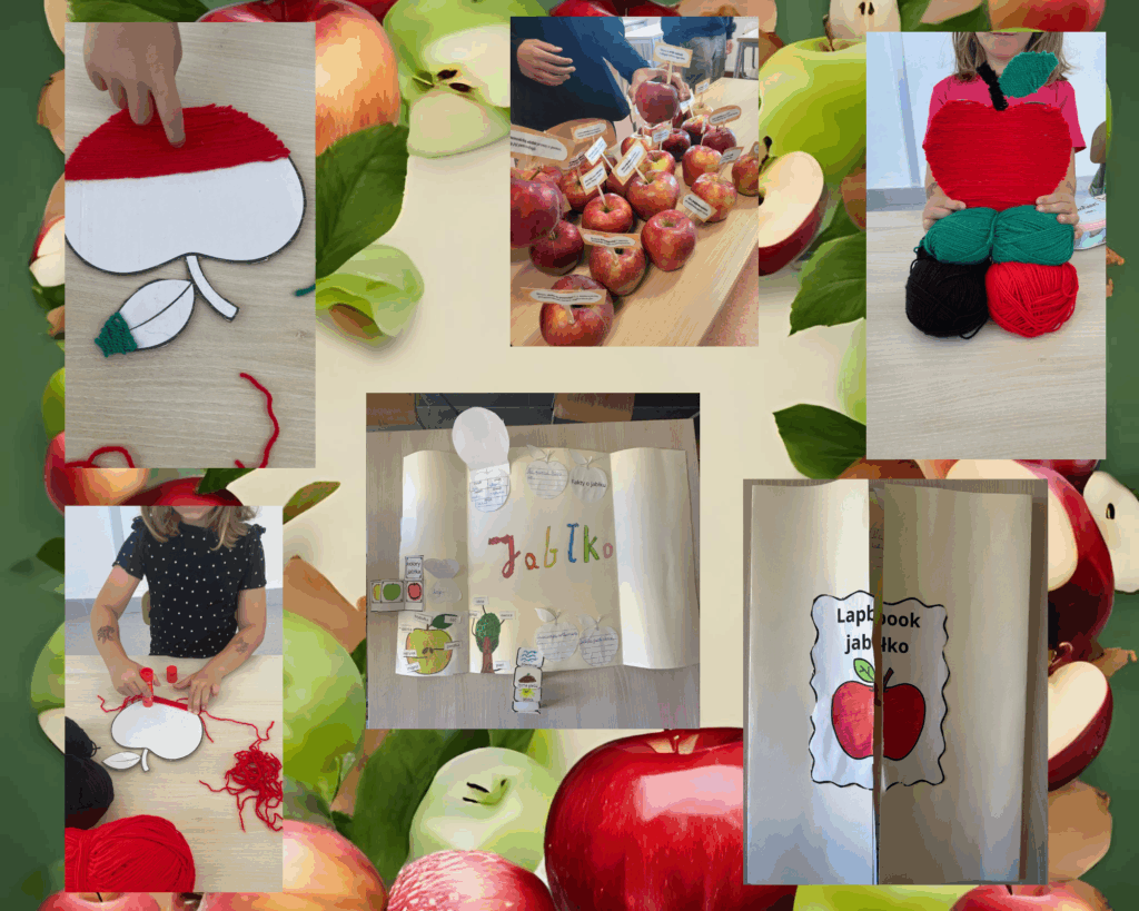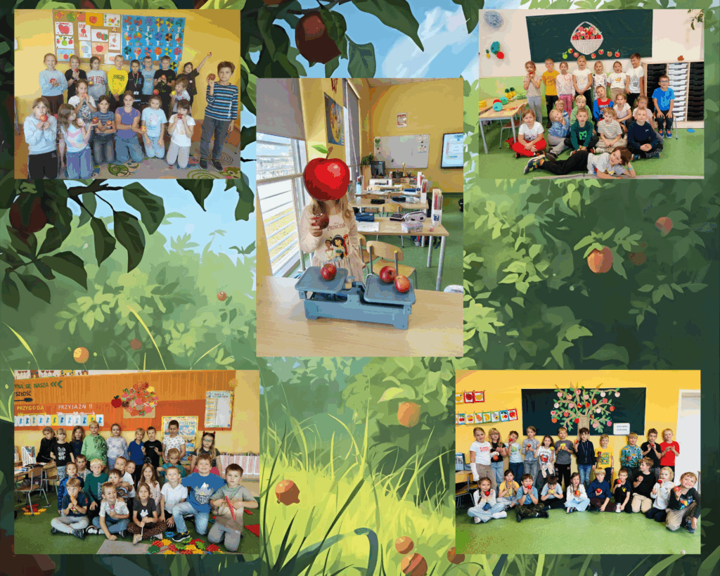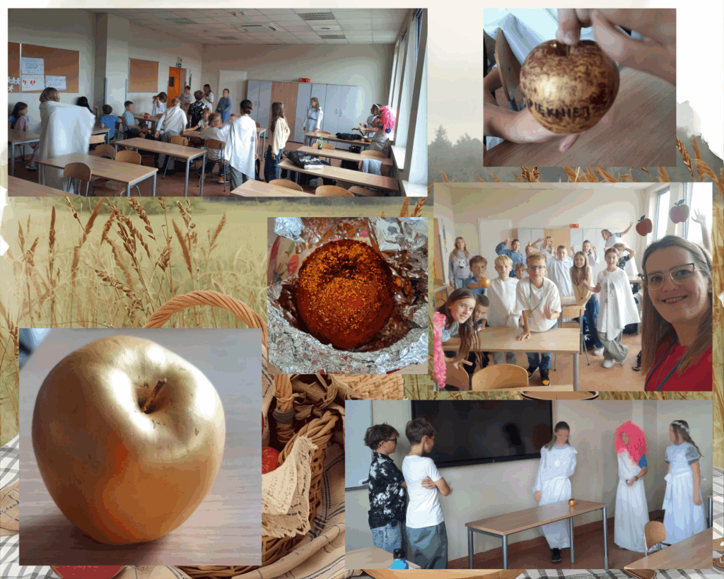 W piątek, 26 września, cała społeczność szkolna świętowała Dzień Jabłka – wyjątkowe, interdyscyplinarne wydarzenie, które połączyło naukę, zabawę i promocję zdrowego stylu życia. Okazało się, że jabłko można zjeść, narysować, wyciąć, a nawet odegrać na scenie! Uczniowie ćwiczyli cierpliwość przy wełnianych jabłkach, tworzyli lapbooki, wcielali się w królewnę Śnieżkę i… w Parysa, który musiał rozsądzić kłótnię trzech bogiń o złote jabłko! Przy scenkach było dużo śmiechu, a nasza Śnieżka nie potrafiła oprzeć się jabłku na tyle, że chrupała je dalej, nie zważając na… przebieg akcji. 😅