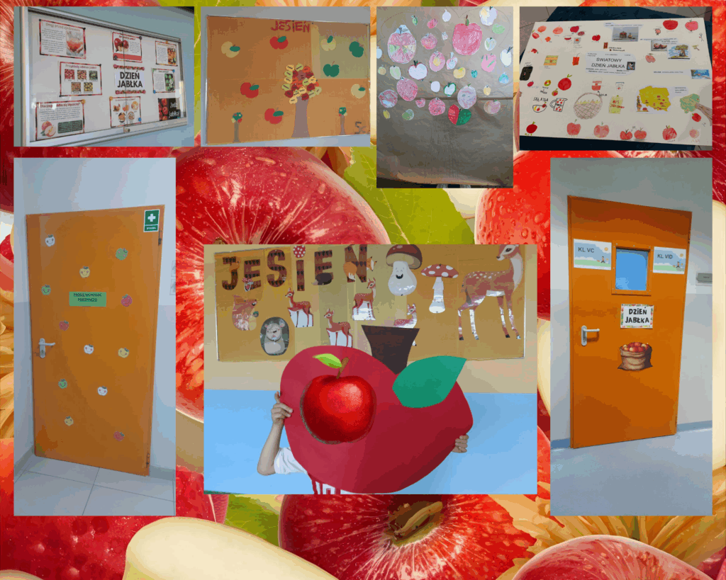 Były też jabłkowe tatuaże, afirmacje, przysłowia oraz wielka mapa kultury, w której jabłko grało pierwsze skrzypce. W holu pojawiła się tematyczna gazetka i dekoracje w jabłkowym klimacie, bo jak świętować, to z rozmachem! 🍎✨
