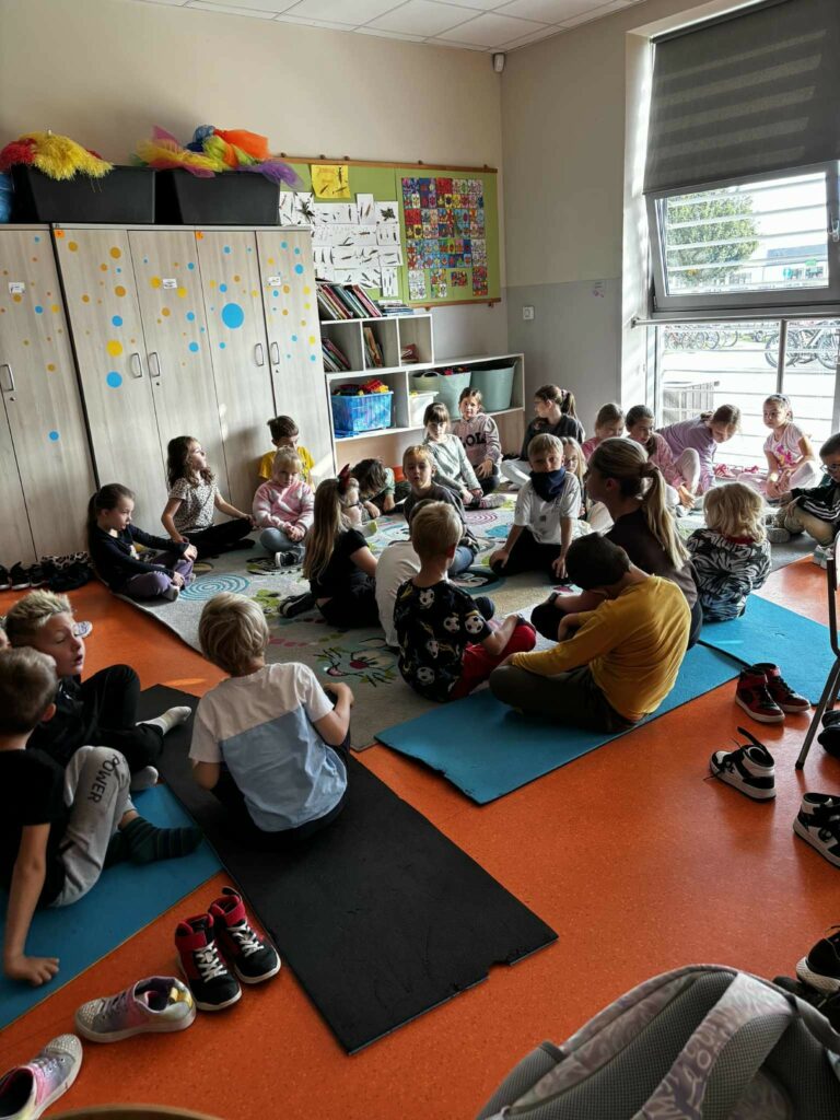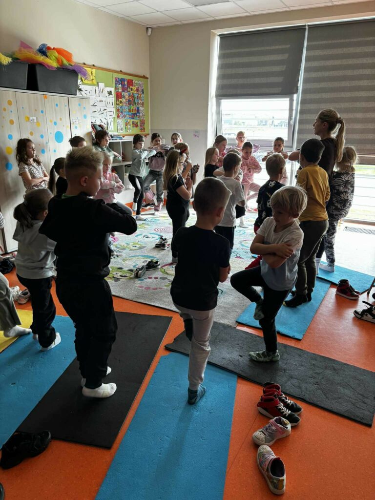 W ramach innowacji pedagogicznej „Hałas ma odpoczynek” dzieci uczestniczą w zajęciach jogi, relaksacji i rozmowach o emocjach. To czas, w którym uczymy się wyciszenia, uważności i dbania o swoje samopoczucie