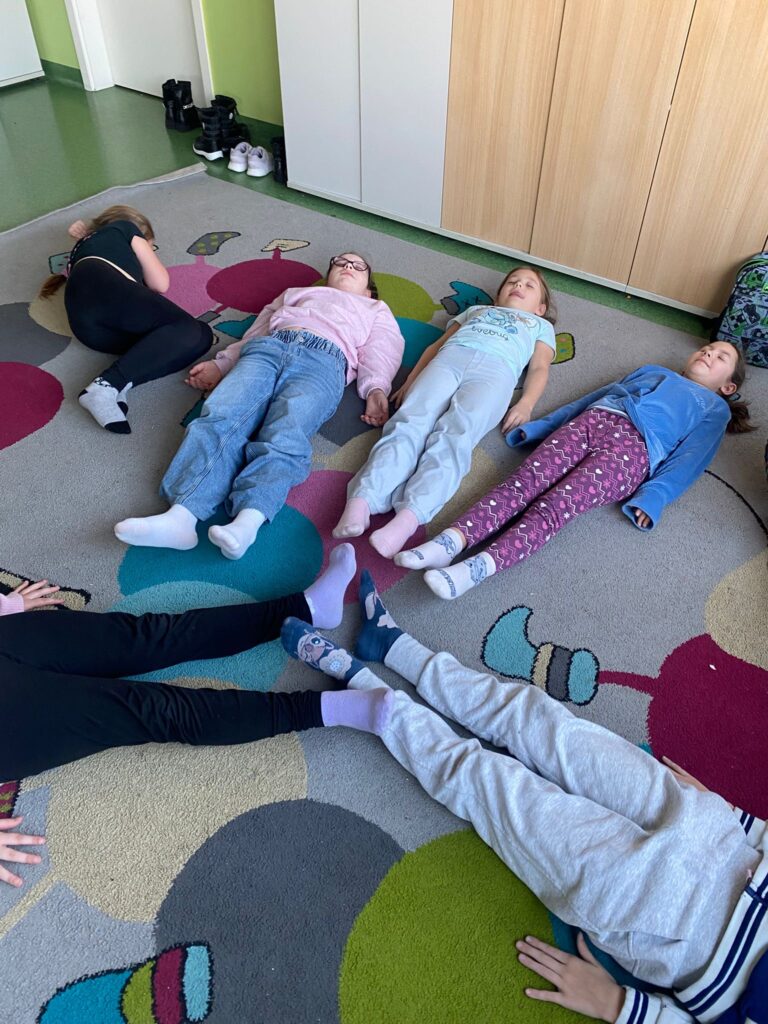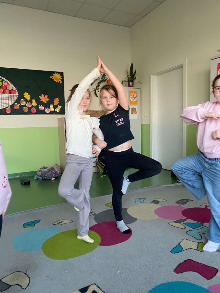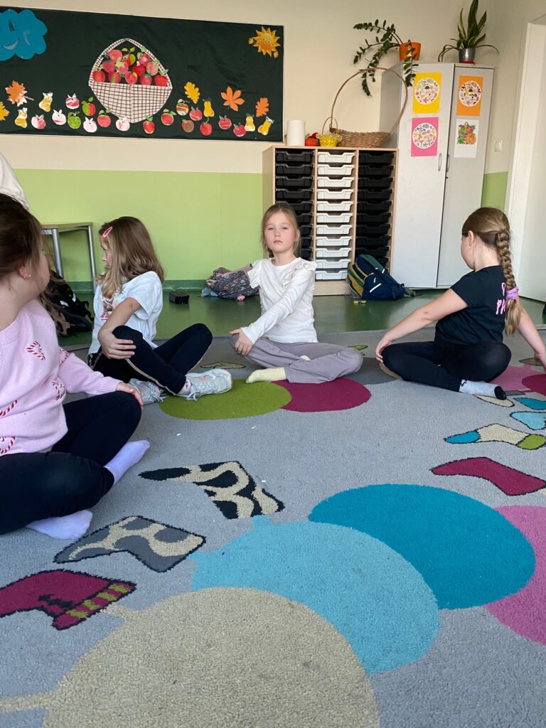 Uczniowie z klas drugich i trzecich mieli możliwość uczestniczyć podczas pobytu w świetlicy , w zajęciach jogi. Zajęcia zostały przeprowadzone w ramach innowacji : “Hałas ma odpoczynek”.
