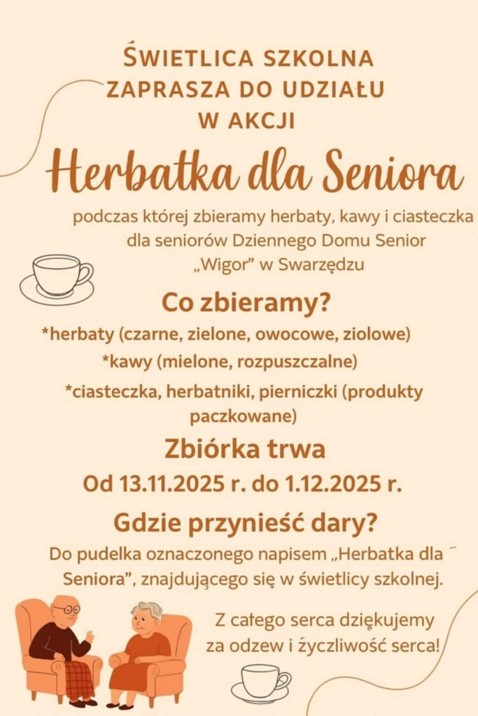 W tym tygodniu w naszej świetlicy organizujemy akcję pod nazwą “Herbatka dla Seniora”, związaną z obchodami Dnia Seniora. Zachęcamy całą społeczność szkolną do włączenia...