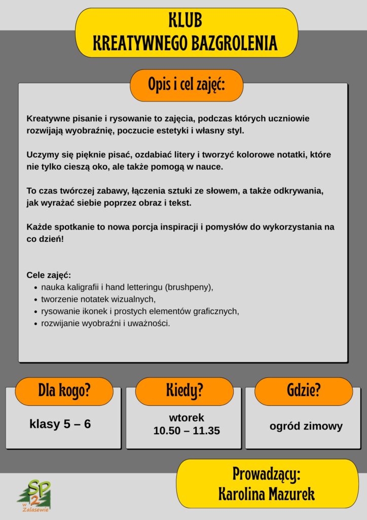Zajęcia kreatywne w roku szkolnym 2025/2026