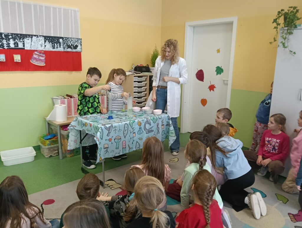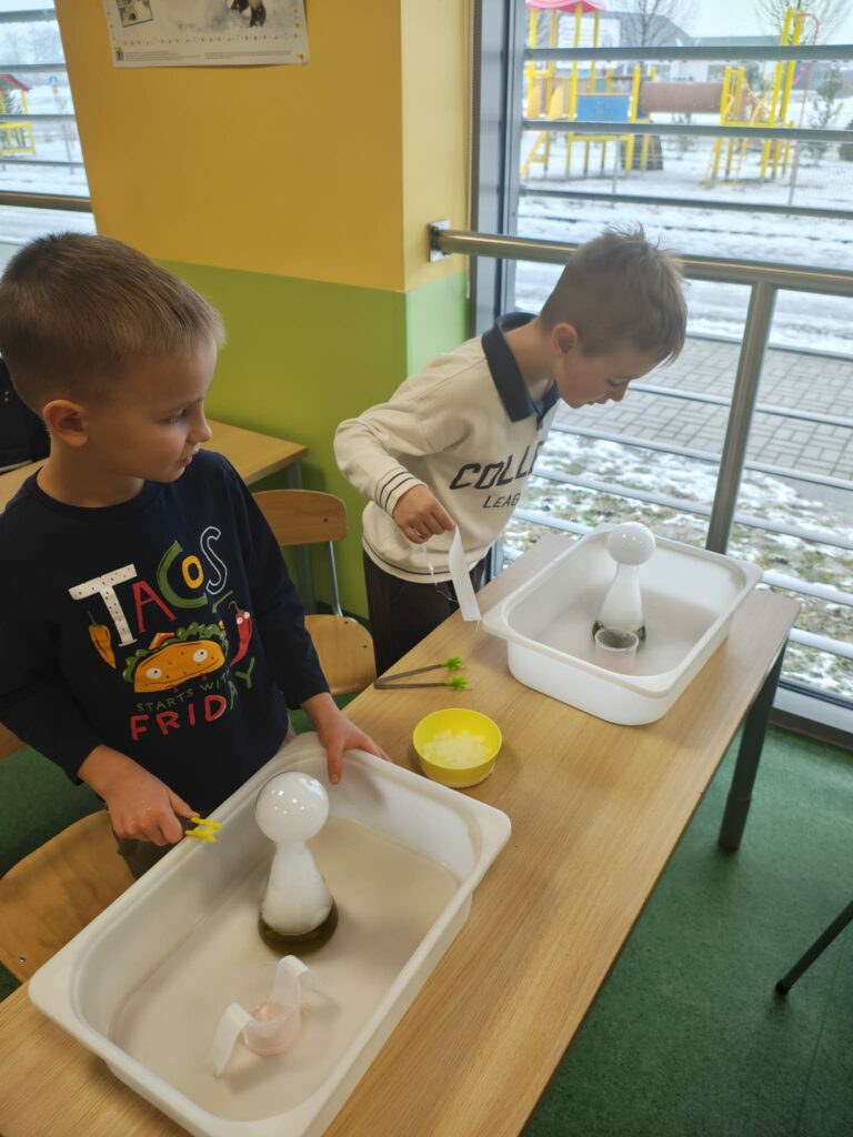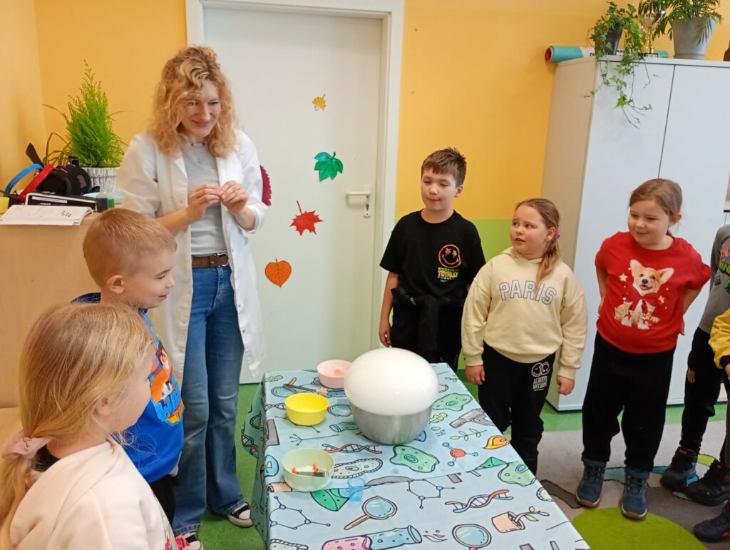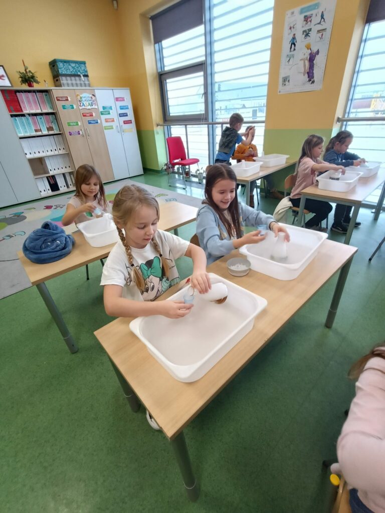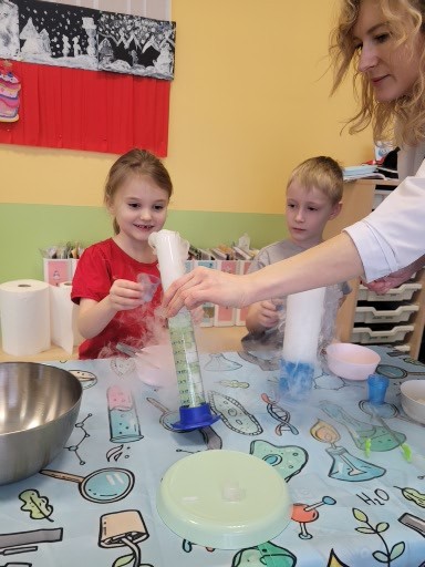 Podczas kolejnych wspólnych zajęć klas pierwszych dzieci wzięły udział w niezwykle widowiskowych doświadczeniach z wykorzystaniem suchego lodu. Było dużo „dymu”, efektu wow i prawdziwego zachwytu 😍
