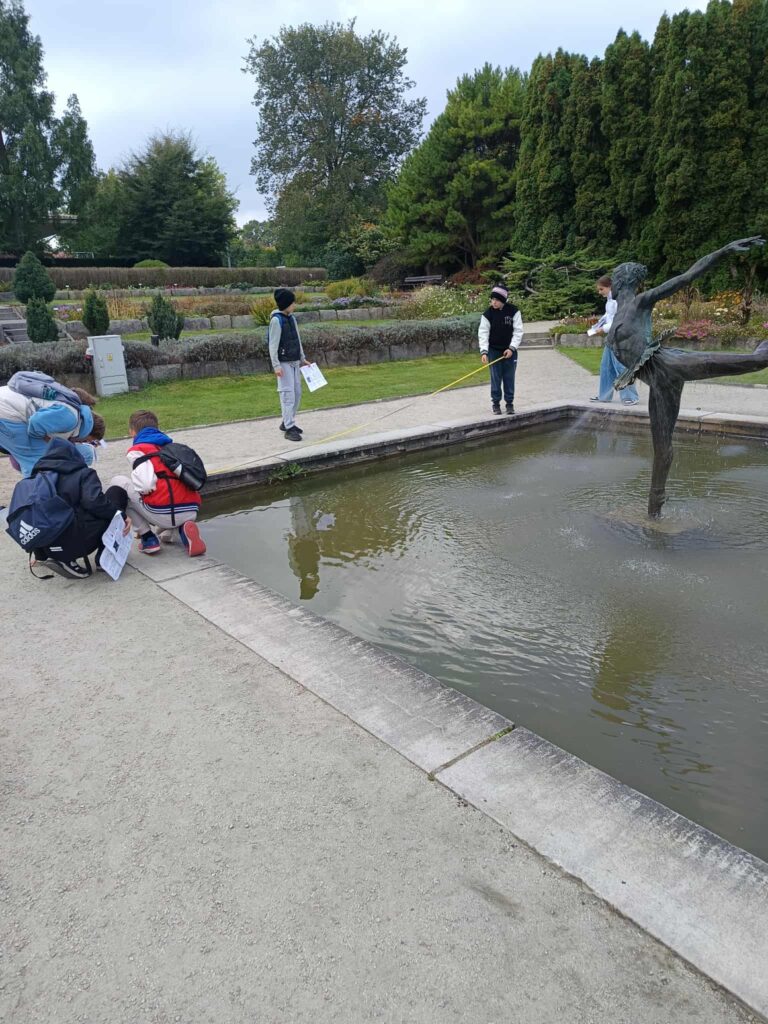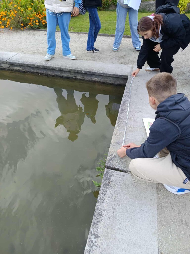 Podczas matematycznej przygody uczniowie rozwiązywali praktyczne zadania związane z otaczającą ich przyrodą. Obliczali m. in. powierzchnię wybranych fragmentów ogrodu, szacowali objętość wody w fontannie, określali wiek drzew na podstawie obwodu pnia, a także obliczali ilość tlenu produkowaną przez drzewa.