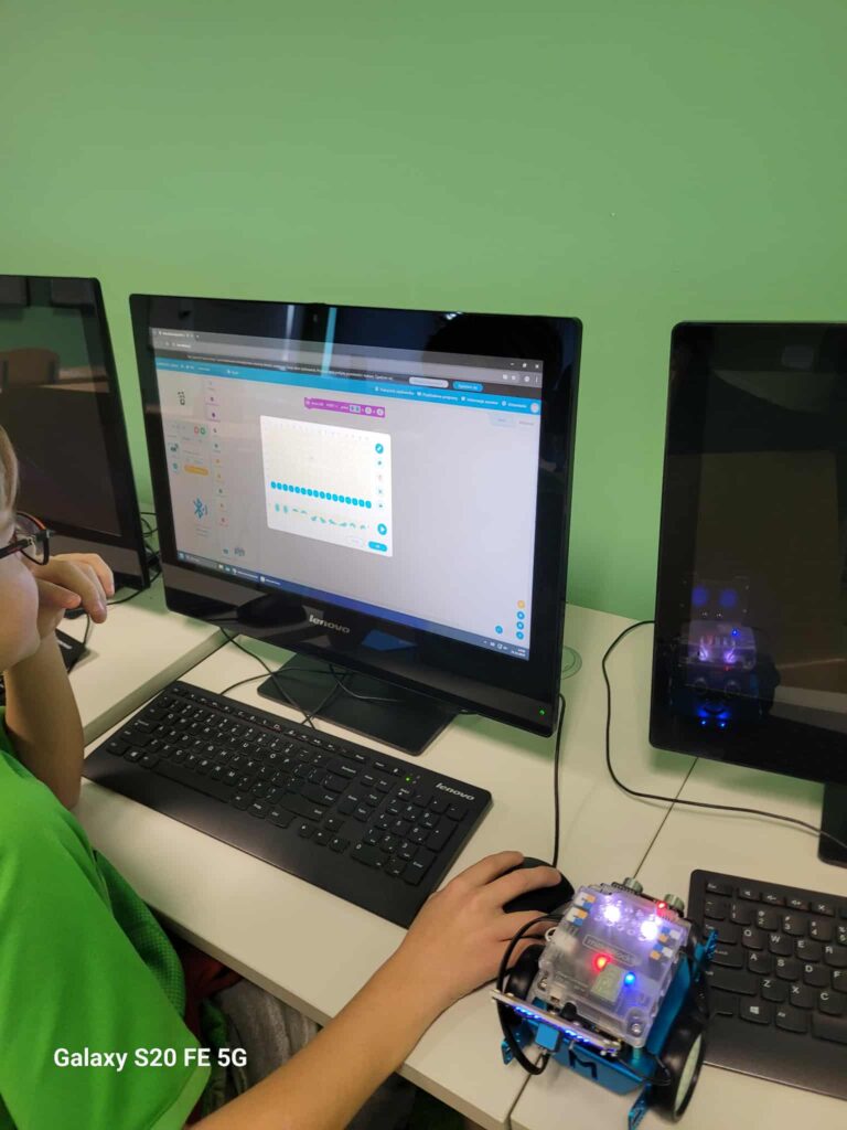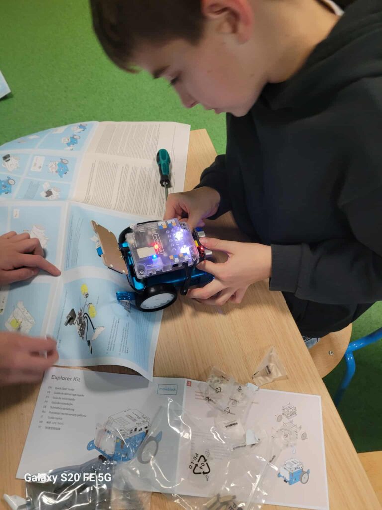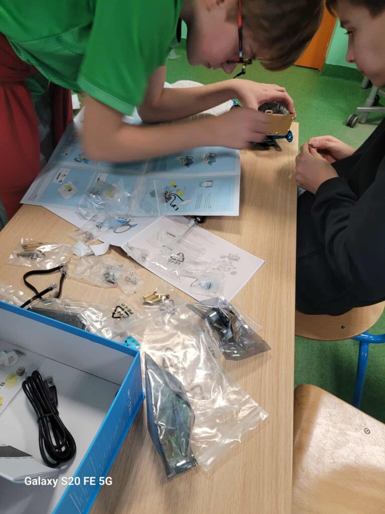 Na ostatnich zajęciach kółka informatycznego uczniowie pracowali nad budową i programowaniem robota z zestawu Explorer Kit. Poznaliśmy podstawy elektroniki, składaliśmy komponenty, a następnie tworzyliśmy pierwsze linijki kodu, które wprawiły robota w ruch. Było dużo kreatywnego myślenia, testowania i radości z działania własnoręcznie skonstruowanego urządzenia. Na kolejnych zajęciach dokończymy naszą konstrukcję i sprawdzimy, co jeszcze potrafi nasz robot. Będzie się działo.