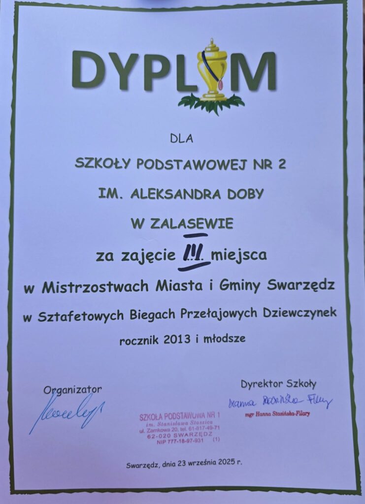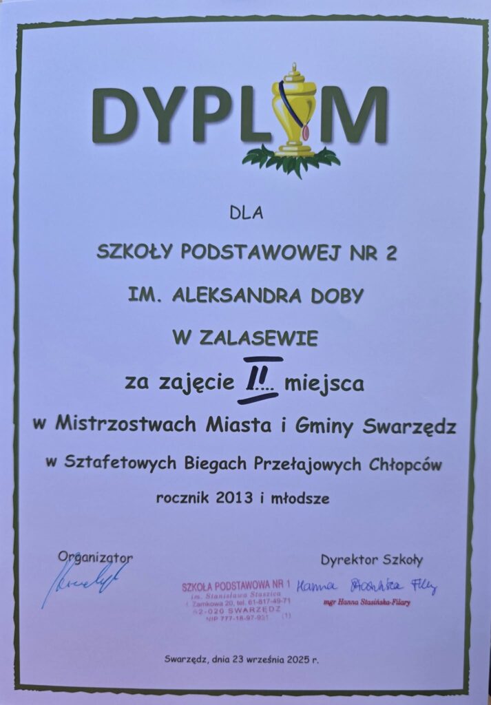 Dnia 23 września 2025 r. na Stadionie Miejskim im. Mariana Zaporowskiego w Swarzędzu odbyły się pierwsze zawody sportowe w roku szkolnym 2025/2026 – Mistrzostwa Miasta i Gminy Swarzędz w Sztafetowych Biegach Przełajowych Dziewcząt i Chłopców rocznik 2013 i młodsi.