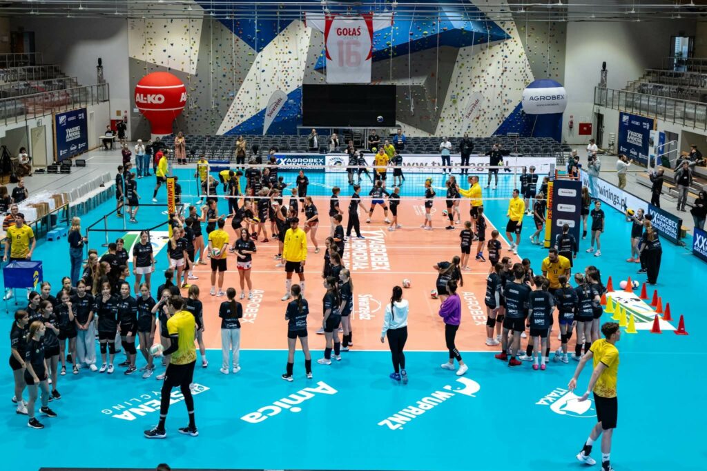 Dnia 17 października 2025 r. w naszej szkole odbyły się warsztaty siatkarskie dla uczniów szkół podstawowych z gminy Swarzędz prowadzone przez zawodników SKRA Bełchatów podczas XX Agrobex Memoriał Arka Gołasia. Uroczystego otwarcia warsztatów dokonał Pan Marian Szkudlarek Burmistrz Miasta i Gminy Swarzędz w obecności sekretarz Pani Agaty Kubackiej, Prezesa Fundacji Memoriału Arkadiusza Gołasia – Pana Jacka Kubiak oraz Pani Dyrektor Szkoły Podstawowej nr 2 im. Aleksandra Doby w Zalasewie Pani Beaty Hałas. W warsztatach udział wzięły wszystkie szkoły podstawowe z naszej gminy Swarzędz wraz z nauczycielami wychowania fizycznego. Celem warsztatów była popularyzacja piłki siatkowej wśród dzieci i młodzieży szkolnej. Uczniowie doskonalili podstawowe umiejętności techniczne gry piłki siatkowej min. odbicia górne, dolne, umiejętność poruszania się po boisku czy zagrywkę pod okiem najlepszych na świecie gwiazd siatkówki. Na zakończenie warsztatów każdy uczestnik mógł zrobić sobie pamiątkowe zdjęcie z zawodnikami, zebrać autografy czy przybić „piątkę”.