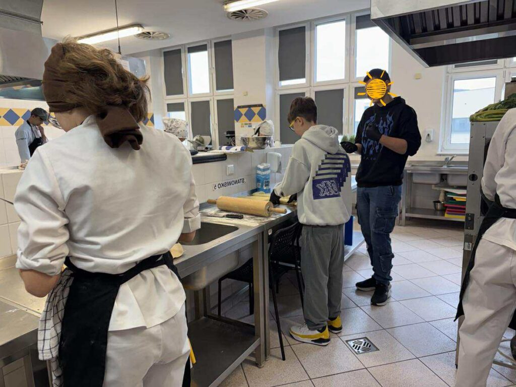 Podczas krótkiej prelekcji dowiedzieliśmy się, jak nasze zainteresowania możemy wykorzystać przy wyborze szkoły oraz jakie kierunki oferuje bliska nam placówka. Po części teoretycznej przyszedł czas na praktykę! Odwiedziliśmy warsztat samochodowy, pracownię spawalniczą, informatyczną oraz… odbyliśmy słodką przygodę z cynamonkami w pracowni cukierniczej! Jak wszystkim wiadomo – przez żołądek do… NOWEJ SZKOŁY!