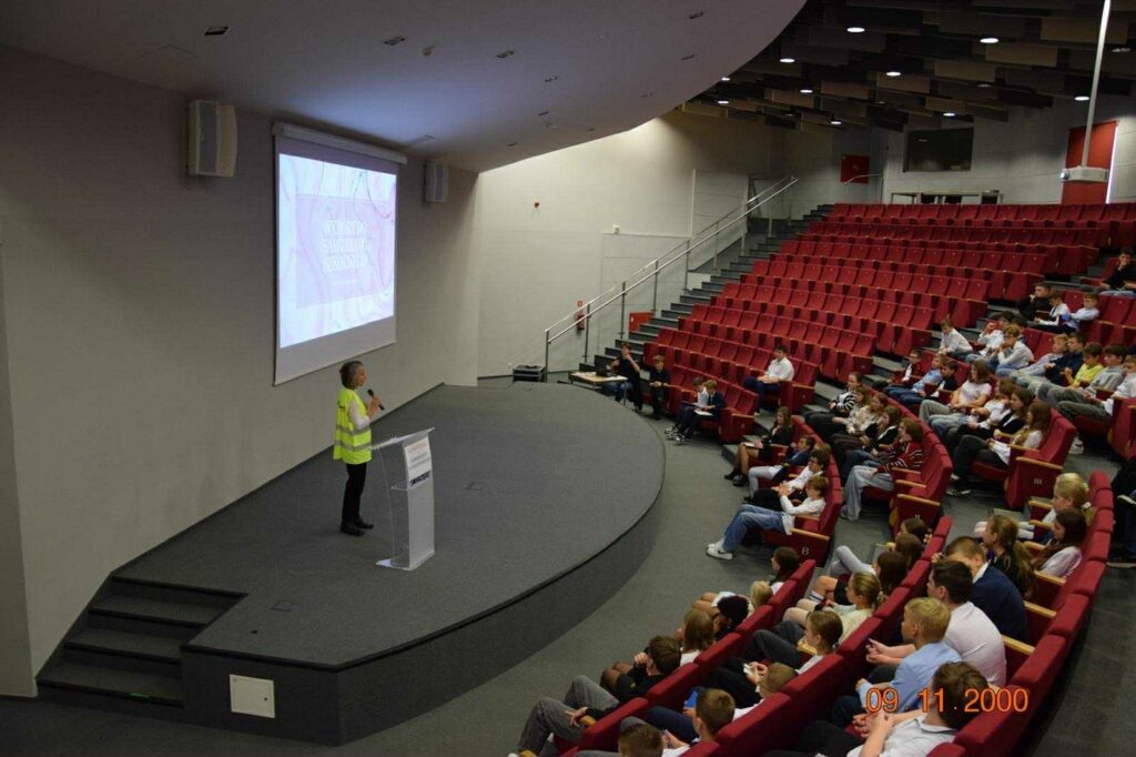 Korzystając z licznej obecności uczniów w auli, przypomnieliśmy także o niezwykle ważnej kwestii bezpieczeństwa. Wraz z nadejściem jesieni i krótszych dni, widoczność na drodze staje się kluczowa. Dlatego apelujemy do wszystkich uczniów: pamiętajcie o noszeniu odblasków w drodze do szkoły i z powrotem do domu! Dzięki nim będziecie widoczni dla kierowców, co znacząco zwiększy Wasze bezpieczeństwo.