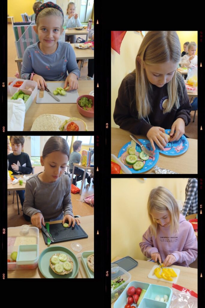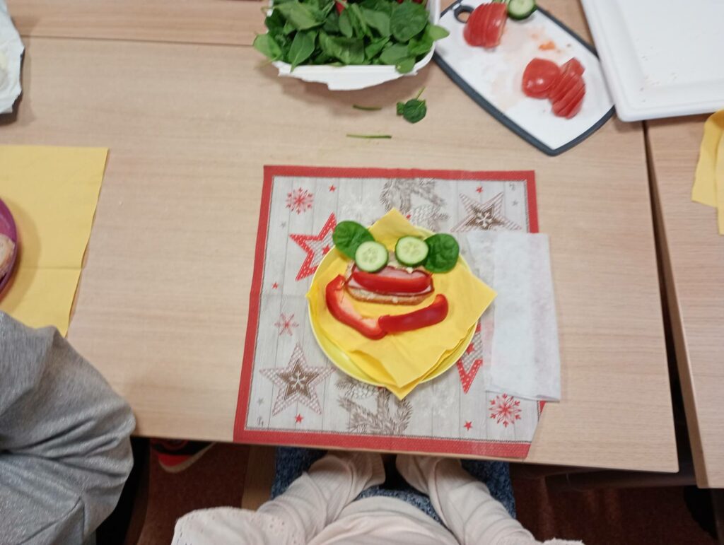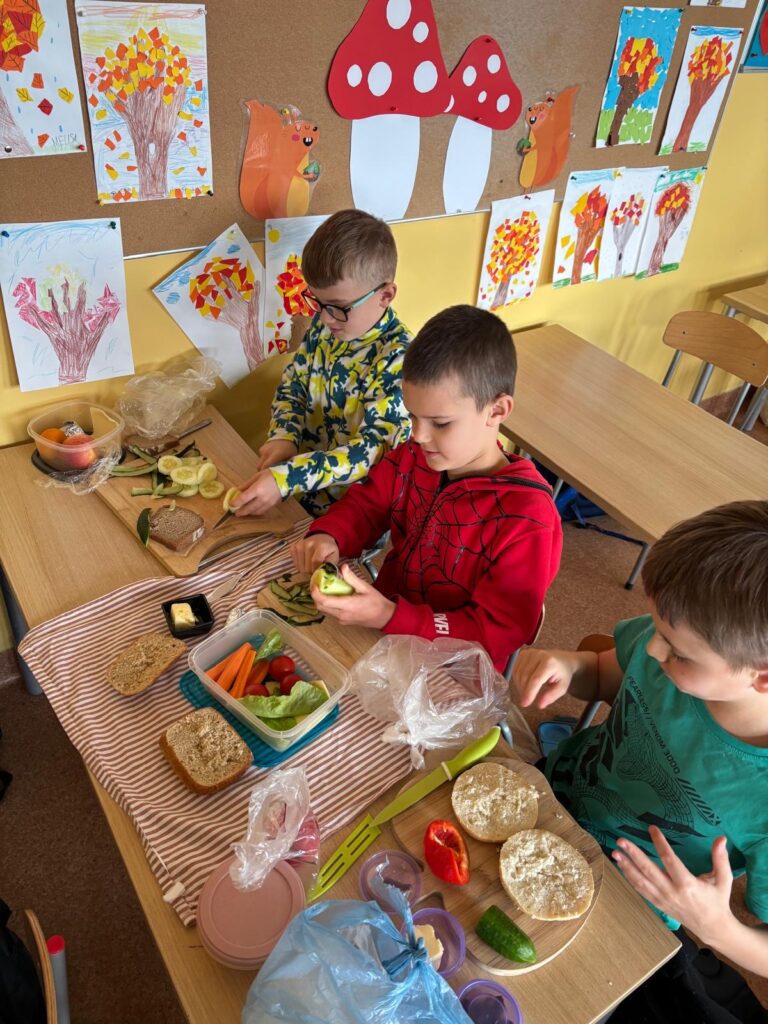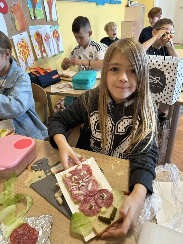 Klasy przygotowywały kolorowe kanapki, pełne warzyw, świeżego pieczywa i zdrowych dodatków. Tworzyły pyszne koktajle, blendując owoce, jogurty i naturalne składniki. Komponowały owocowe sałatki, ucząc się różnorodności smaków i wartości odżywczych.